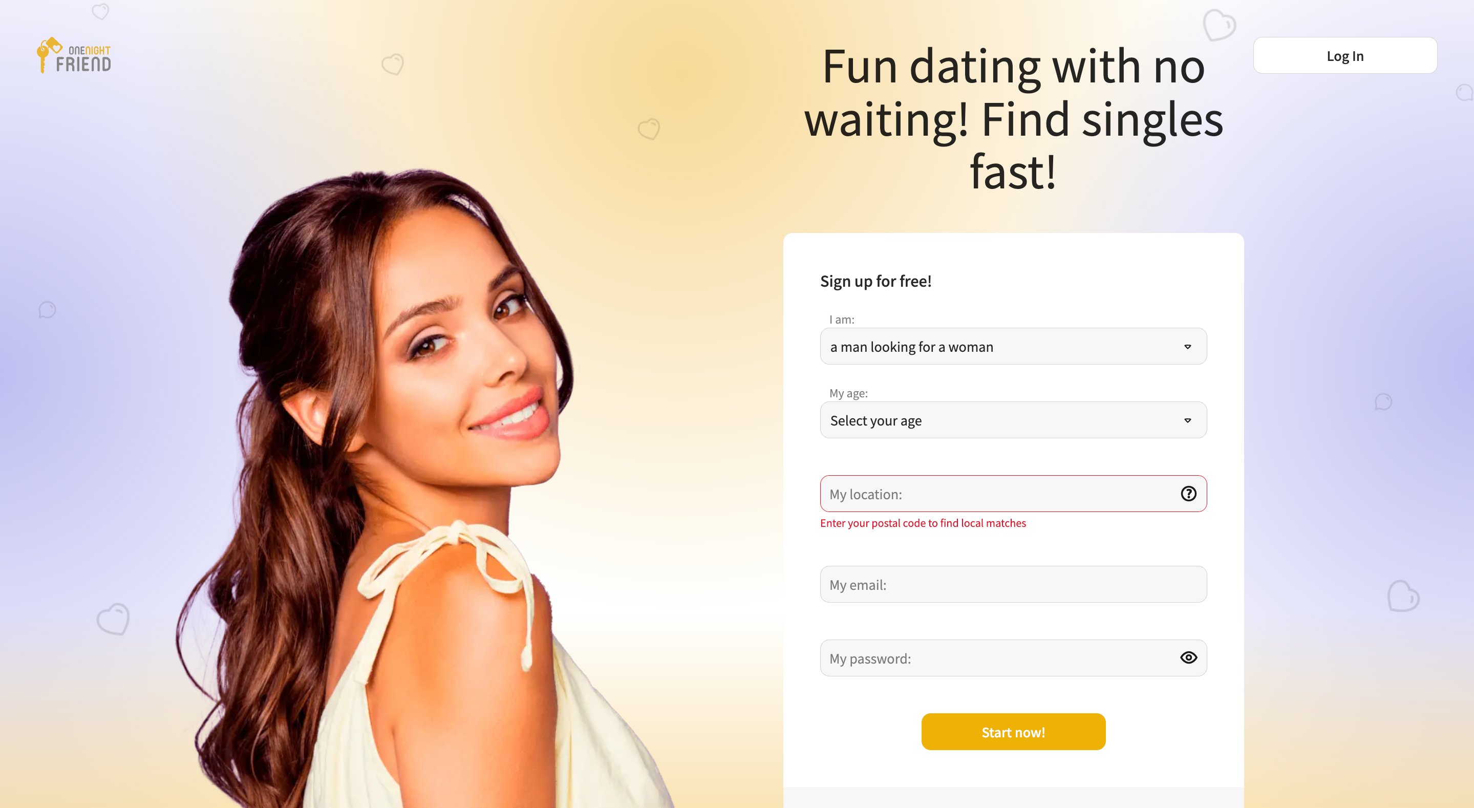🔥 There is no welcome bonus on OneNightFriend—you won’t get any free credits here. What you will get, however, is a pass to a whole new world of hot singles interested in a hookup, and you only need 3 clicks and 1 minute to join this world. So, why waste time?