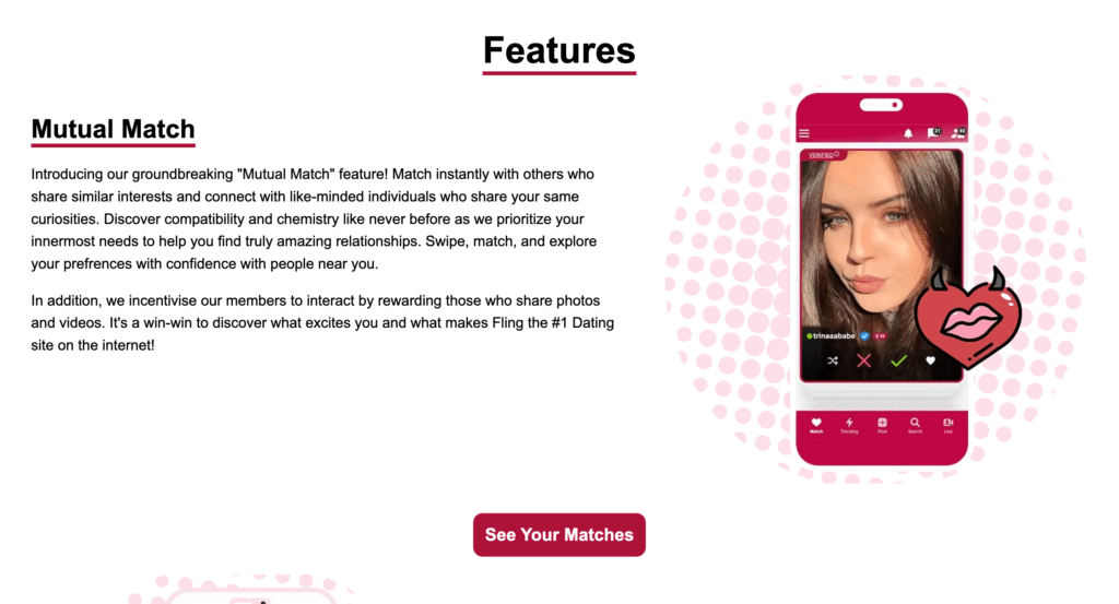 🔥 We believe that with its huge userbase, high success rate, and good reputation, Fling is a dating platform you can’t miss if you’re into casual relationships. Join it now and find an ideal match today!